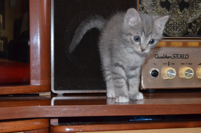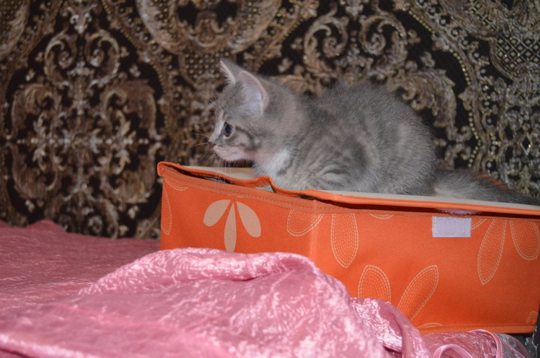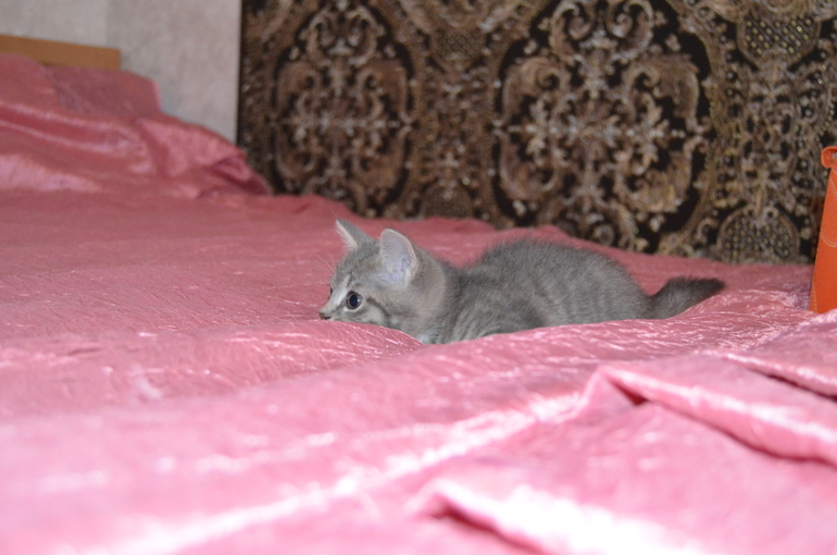 Прежняя хозяйка сказала, что погуляла ее кошка в деревне, так что папаня неизвестен. Родились котята 10 сентября, ему еще и 2 месяцев нет. Было 5, за 10 дней разобрали всех, мы пришли - он был уже последним.