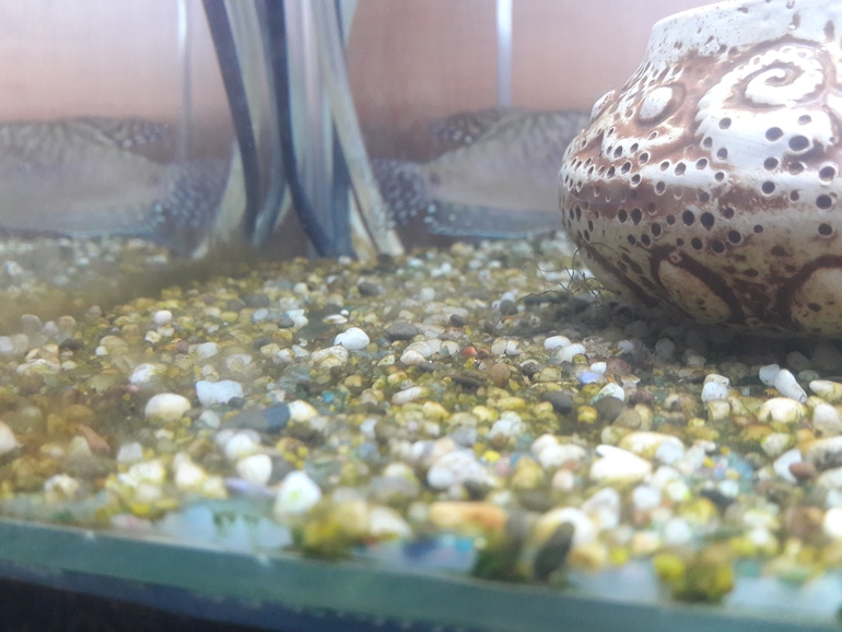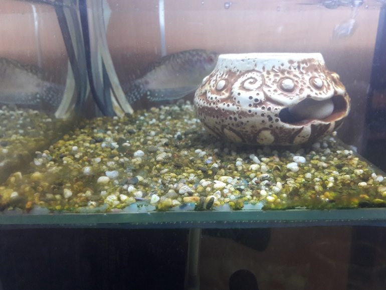Рыбки, аквариумыВсем привет.Первый пост ниже.Часть рыб раздали.Теперь остались:большой сомик, скалярия,маленькая гурами и еще купили черного телескопа. Ну а проблема не решилась:быстро пачкается грунт,башмачок, стекло по периметру и полочка,которая осталась от конструкции террариума. Фото ниже.Аквариум чистили в пятницу. Фото вчера: