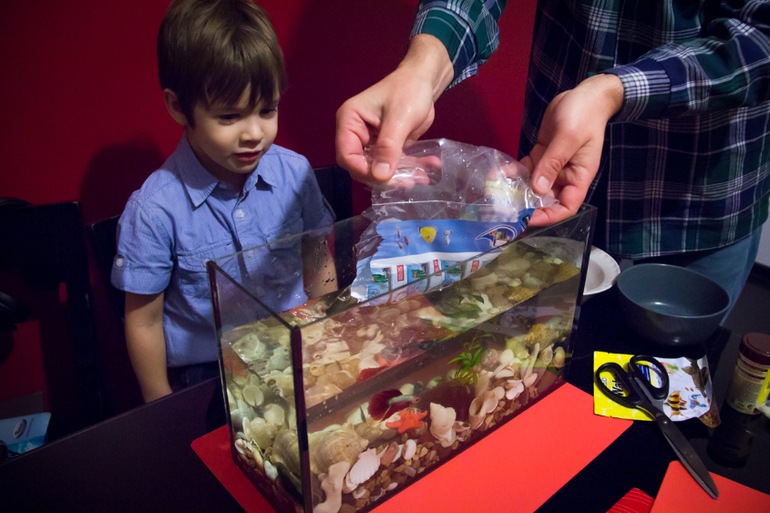 Ребенку подарили живых рыб!!! аааа. Он ночевал, свернувших калачиком вокруг аквариума и пытался кормить несчастных рыб каждые 5 минут. Он каждой дал имя! Имя, Карл! На этом моменте, я поняла, как жестоко я попала... Смывать в унитаз безымянную рыбу проще, чем друзей Тилли и Вилли.
