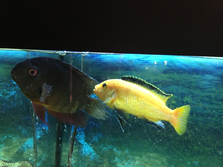 Утречком включили свет, сомик как засуетился, как заактивничал, петушок Роза как принялся неонов гонять, а неоны Лео, Нео и Тео как давай удирать во все стороны. Жизнь кипит! Красота. Мы все опоздали и в сад и в школу, - наблюдали!