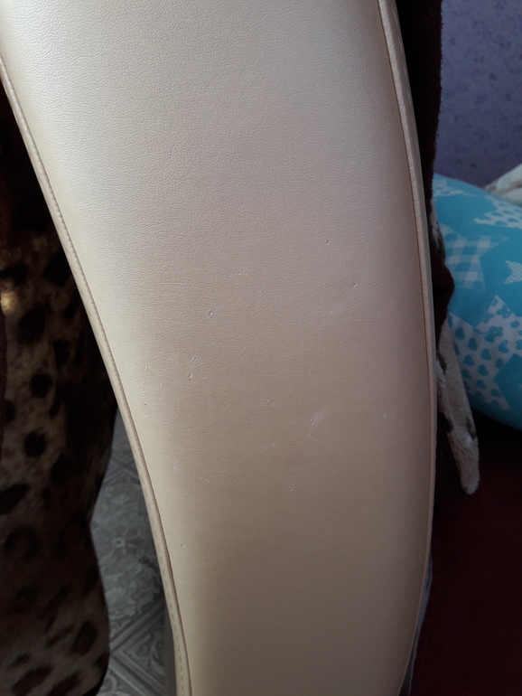 Да тоже не дерут ничего, и когтеточка есть, это вышло случайно у меня на глазах. Кошка за какой-то ниткой просто так прыгнула. Кстати, жидкой кожей заделала, правда в цвет не попала. Завтра еще немного цвет подкорректирую и будет незаметно)