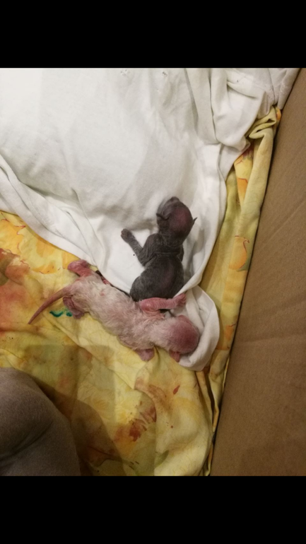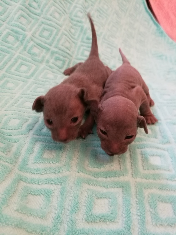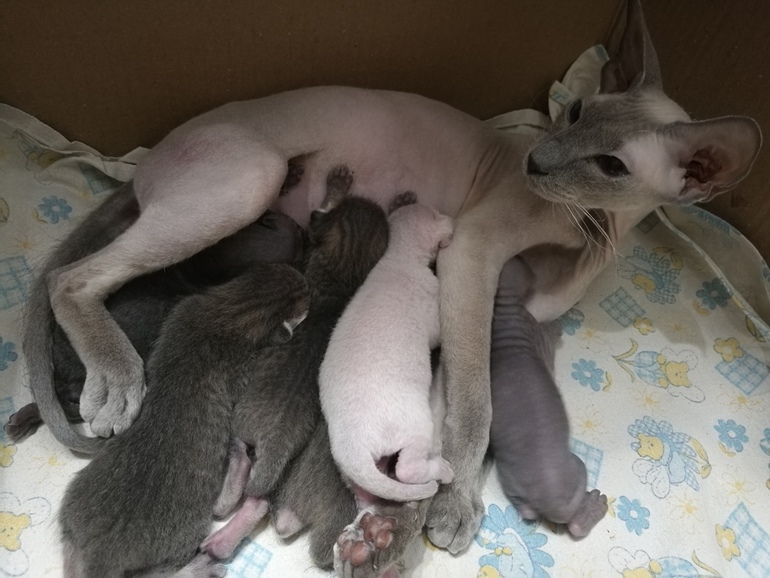 У мамы лапы и хвост велюровые,а всё остальное лысое.. как замша на ощупь.. Вот первые двое