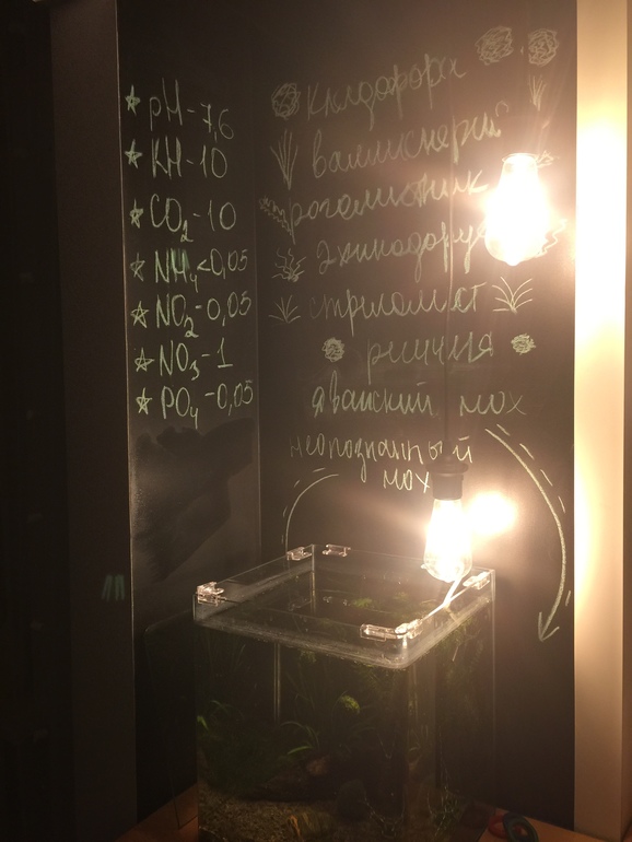 Впринципе жду лампу, хочу подводную подсветку. И можно запускать креветосов вишен.