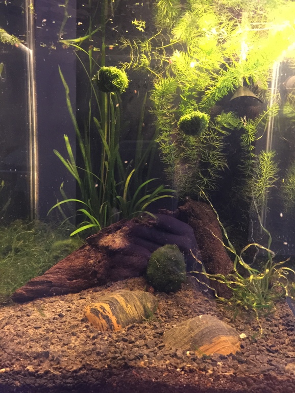 На роголистнике приехали неожиданные гости - катушки. В виде икры, не видно их было :( Прижились и расплодились маманегорюй. Зато камни, коряжку и стекло отполировали.