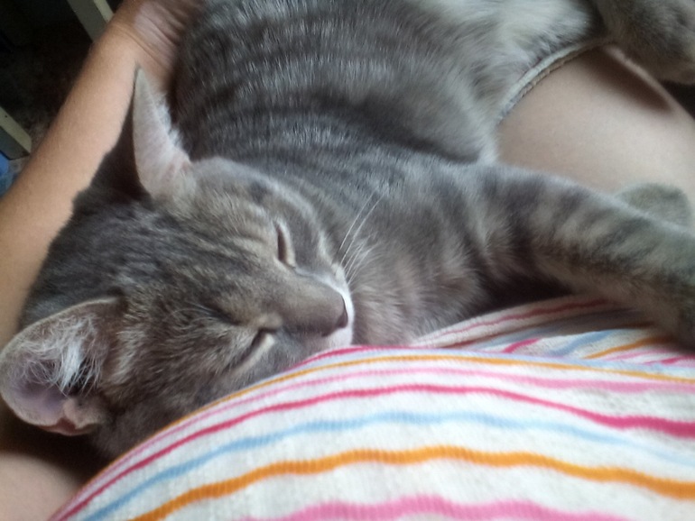 На улице метель, холодно, а дома тепло - захожу,дома еще все спят, тепло , тихо и только Тимоша встречает с высоко поднятым хвостом-радуется просто тому,что хозяйка вернулась! Трется об ноги, мурлыкает на всю кухню и норовит забраться повыше на руки,чтобы чувствовать дыхание! Вот как тут не сядешь,хоть на минутку?! Опять мгновенье счастья и безмятежности - словно мурлыканье прогоняет прочь все печали и тоску!