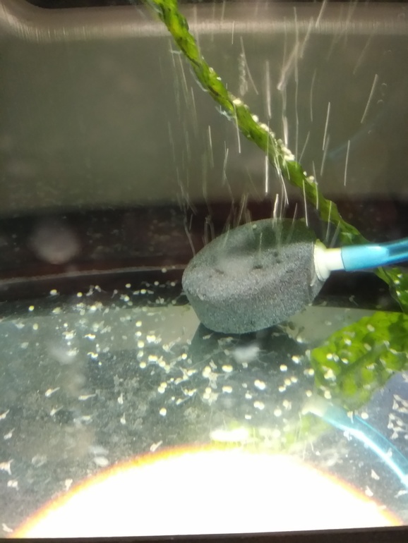 Посмотри на фото выше. Мы их сразу отселили в отдельный аквариум+ кислород. Сегодня ни разу не посмотрела. Боюсь, что ни одной живой не осталось