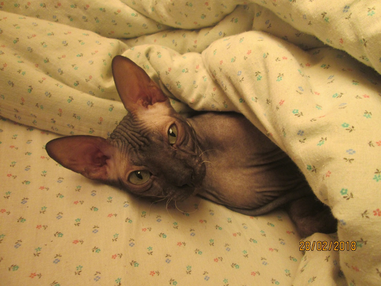 У нас такой же лыскарь - лежанка у горяченной батареи под четырьмя!!! Пледами которые отжал лежит потеет. Еще на окне где солнце любит кайфовать - снизу батарея шпарит, сбоку солнце. берешь его, а он как медуза и пахнет грибочками.-