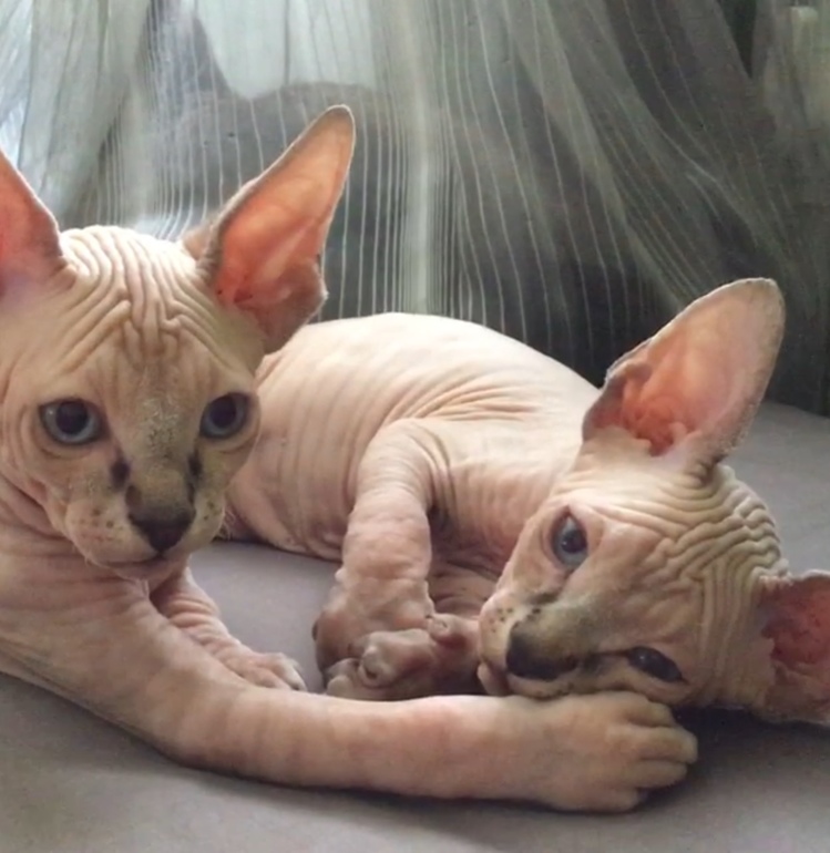 Так выросли котятки, хорошенькие стали!!! Вика, а вы не знаете на голых кошек бывает аллергия?