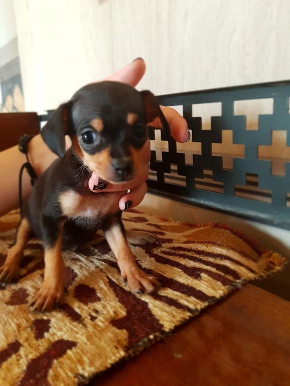 Хорошенькие,малюсенькие щеночки русского гладкошерстного той-терьера. )Родились 1 марта.В помете две девочки и два мальчика. Очень игрывые,подвижные,начинают кушать самостоятельно. Хвостики купированные.Сфоткать хорошо не получается,они постоянно в движении))