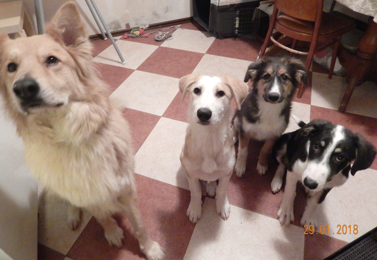 Ребята, которые пристроились у меня: Скай, Арчи, Адель и Флоя