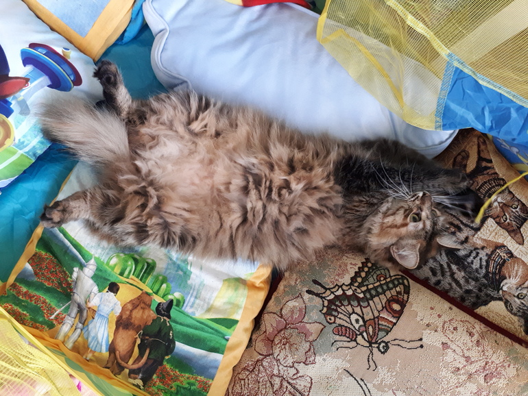 Это кошка с характером собаки. Очень преданная, обожает обниматься и спать на спине. Когда дети играют она всегда вместе с ними, подставляет уши под оттоскоп и честно лежит спокойно пока ей слушаю легкие, позволяет себя бинтовать и делать уеолы)) . Никогда не позволит себе агрессию по отношению к ребенку, только излишнее терпение и мурчание. Вообще я никогда не видела кошек с таким большим и смелым сердцем.
