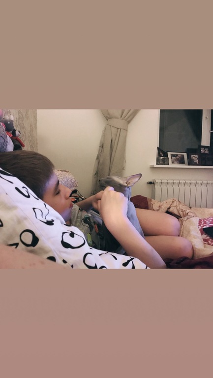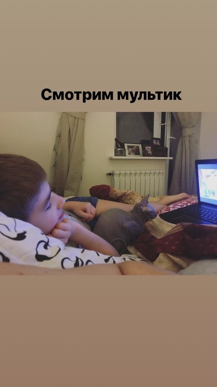Пока я болела мы смотрели мультики по вечерам ,кошки очень любят сына , если не на мне , таке а нем ☺️