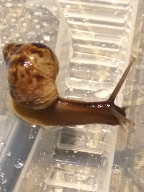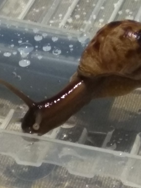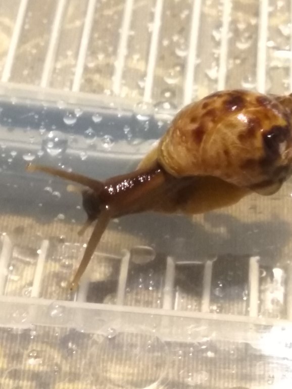 Свекру на работе подкинули контейнер с парой ахатин (вроде). В первый же день одна сдохла, вторую сегодня привезли домой.