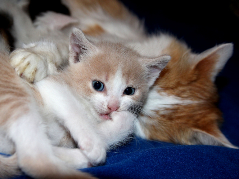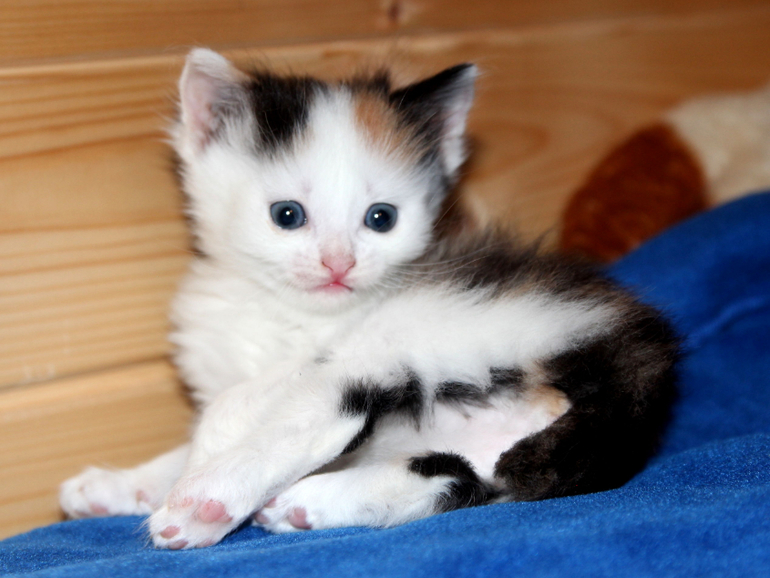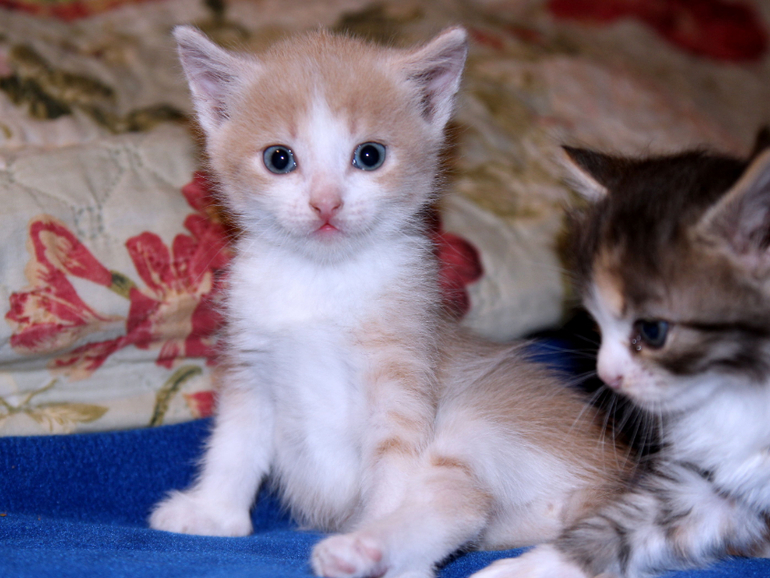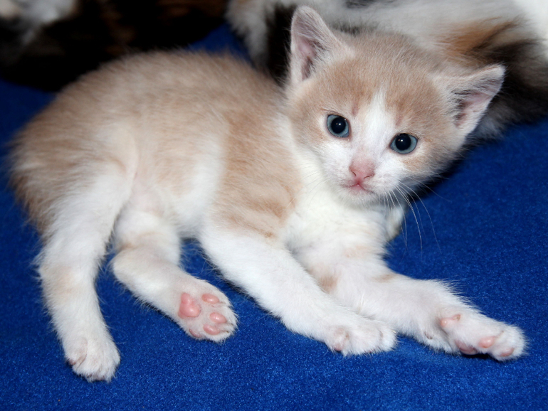 Продажа животныхПомогите пристроить котяток. Мама помесь с ангорской, а папа - курильский бобтейл. Девочка пошла в папу - с маленьким хвостиком. Двуцветные - мальчики. Им месяц, но они уже научились ходить в лоток и кушать из миски. Тел. 89057144818
