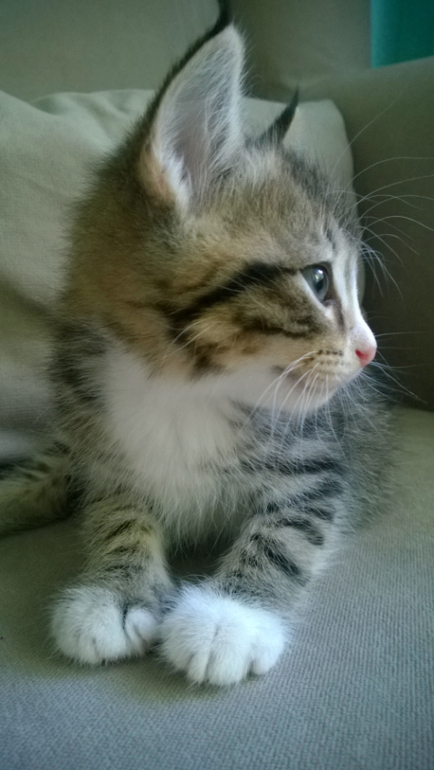 Мальчик.Более спокойный, но шкода еще тот))) Видимо похож на папу, но кисточки на ушах от мамы))) Кушает сухой корм и влажный. К лотку приучен, не копает. Дата рождения 11 мая. Недалеко от Одинцово или метро Киевская.