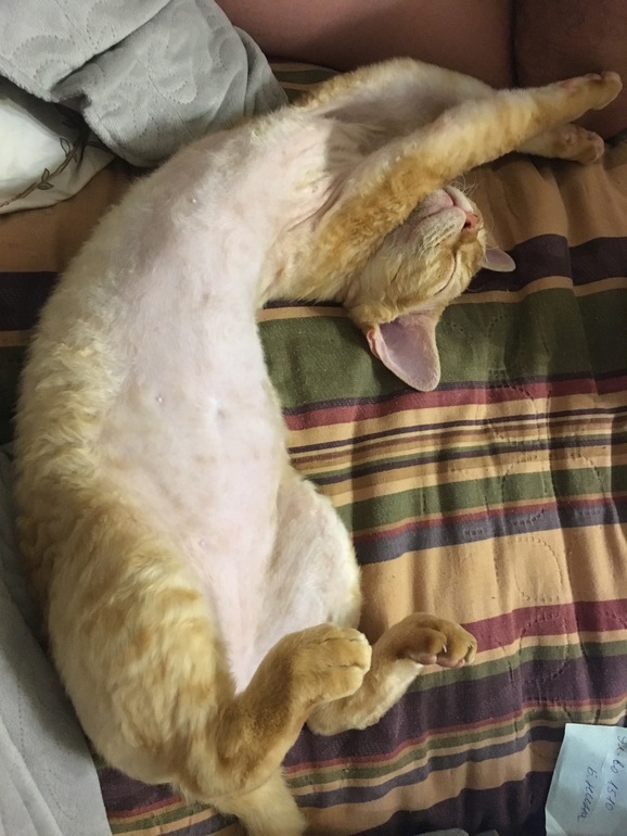Нет, мои на кровати не спят, потому что им там жарко. Они спят на стеклянном столе в спальне.