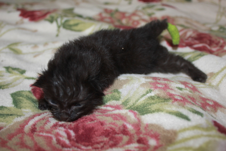 Вопрос с туалетом отпал после принятия эспумизана, пришлось правда некоторым дать вазелина и сделать клизму. У всех трёх котят появились домашние клички: Красавчик, Балу и Ума.