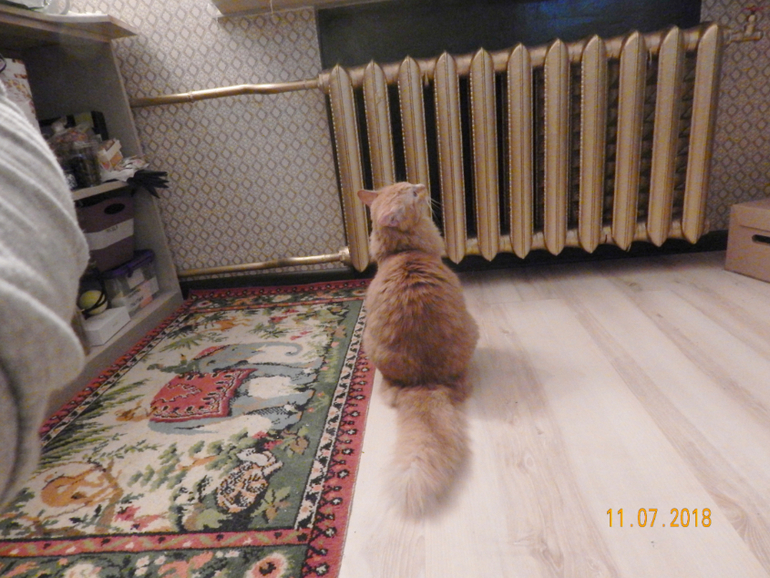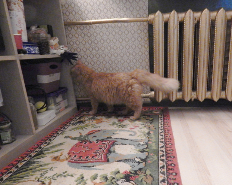 Фунтик потихоньку осваивается в новом доме, сначала просидел пол дня под ванной, но сейчас уже свободно передвигается по квартире, кушает, ходит в лоточек.