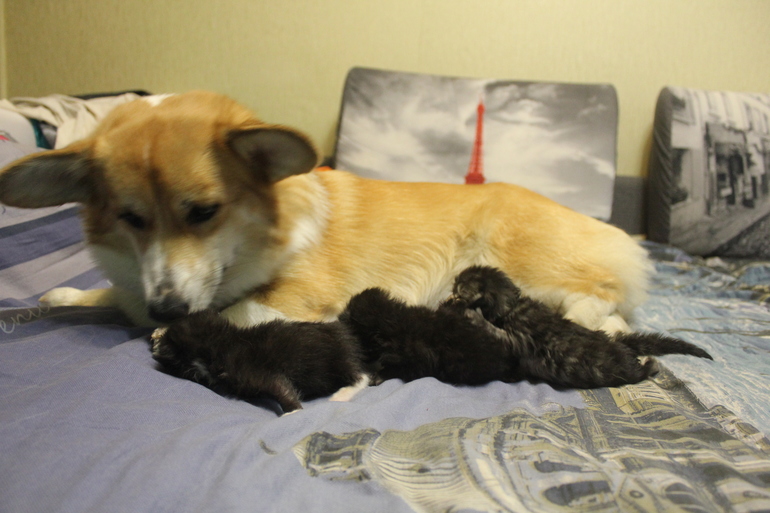 Малыш остался с нами, а моя собака Холлис кот Оливер и кошка Лилу за ним приглядывают. Я очень боялась не приучить их к лотку, но зря. Даже без кошки малыши научились этому делу за один день в возрасте 21 дня.