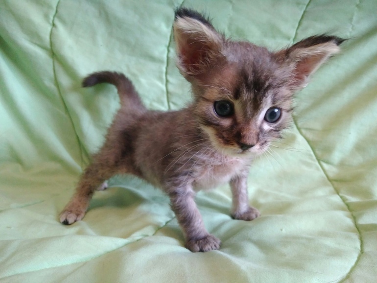 Отогрела, сбегала за кошачьей смесью и стала выкармливать всех троих по строгому графику: каждые 2 часа. Муж меня поддержал, хотя и не понимал до конца во что ввязывается, да я и сама осознала только через неделю бессонных ночей. Это было крайне тяжело, были моменты, когда я очень жалела, что не смогла пройти мимо как все остальные. Были попытки подложить котят кормящим кошкам, но безуспешные. Первый день они все писали кровью, тогда я узнала о том, что бывает несовместимость у котят с кошкой. Одному малышу это сильно аукнулось, отторжение пошло на кончик хвоста и он отсох. Но я справилась и не зря, все мои трудности забылись, а котята нашли новый дом. Ума выросла в красавицу с необыкновенно большими ушами. За ней пришли мама и дочь-подросток, они сразу обрели эту связь человек-питомец. Ума тихо сидела в руках девушки и нежно благодарно мурчала.