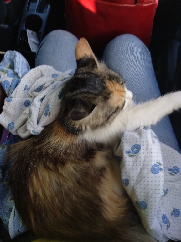 Идея забрать зверушку казалась бредовой - 6 часов дороги, видим её второй раз)) но она была такой радостной и ласковой..