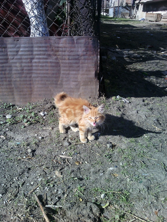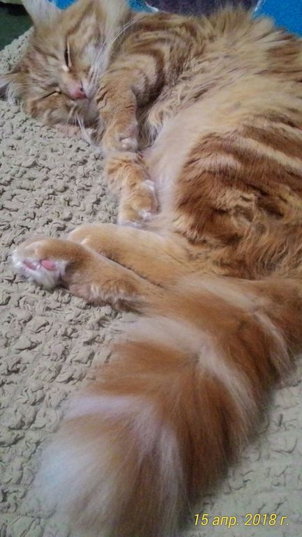 средней пушистости, только хвост очень пушистый и всегда поднят вверх.