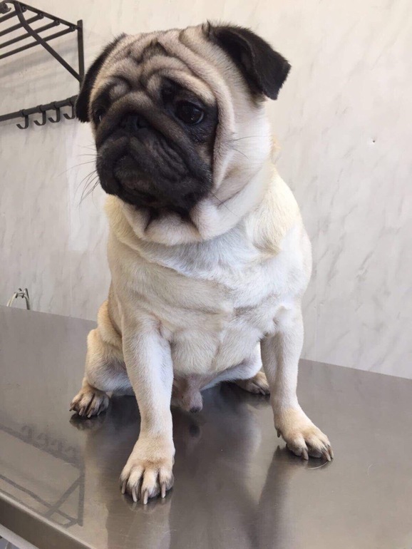 Прощание с питомцем оставляет след, но если ты готов платить этой ценой за такоооой объем любви и ласки, то ты согласишься на собаку еще раз. И я стала думать про собаку в доме, опять. Хотелось породу значительно больше, не охотничью, физически крепкую, психически устойчивую. Милую, чтобы тискать и чтобы позитивна по отношению к детям и окружающим. Выбор был между бульдогами - французским или английским. Англичанин отпал сразу как только я увидела воочию француза. Обмолвилась начальнице, мол я готова к собаке. Пол года готовилась, ждала и выбирала. Но вчера судьба распорядилась иначе, а то, что это судьба иначе и не скажешь. Днем моя начальница в вотсапе скидывает фото мопса. Мальчик, двух лет, остался без хозяев. Они китайцы, работающие в русской фирме. Развелись, жена уехала на родину, а муж постоянно на работе. Понятно, что это не отмазка, но факт остался фактом, малыш оказался в питомнике у моей начальницы. Был на передержке два месяца, отдали его с паспортом, всеми вещами. Абсолютно здоров, прошел всех врачей, привит, имеет даже немного лишнего веса, т.к. хозяин уходил надолго и оставлял таз корма, пищевого режима у собаки нет. Очень грустно. И тут звонок. Надо спасать собаку, давай пристроим. Куда пристраивать я долго думать не стала))