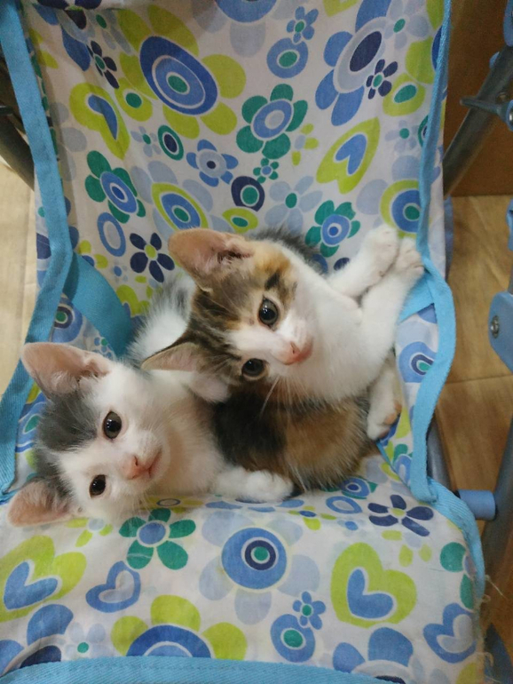 Отдам котят в хорошие руки. К горшку приучены, едят обыкновенную еду. Очень забавные и игривые.Им 1,5 месяца. Справа кошечка, слева - котик.