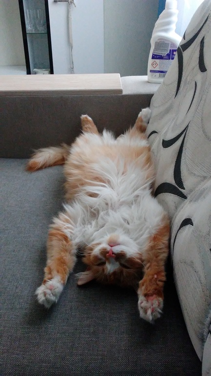 Видно в детстве настрадался, взяли его маленького с рук на рынке,худющий, передние лапы кривые, потом в шесть месяцев обнаружили грыжу, разрезали от передних лап до задних, вросла грыжа в мышцы, еле почистили. Я ждала во время операции в коридоре, так он либо просыпался от наркоза, либо дозу не так рассчитывали, он так кричал и плакал, потом затихал, потом снова крики на весь коридор, а весь располосован. Я в коридоре рыдаю. Но выдержали, когда ношу его в сумке ни разу ни звука не произнес, умничка такой