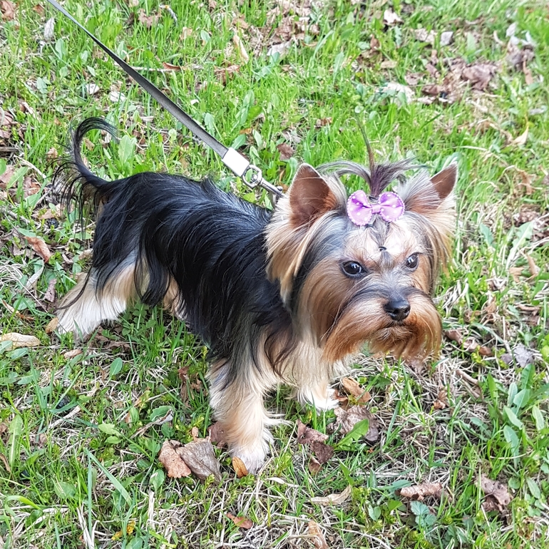 Собака - йоркширский терьер, кобель, 1 год и 2 мес, кастрирован. Весит 2 кг 800 гр. Зовут Шуни. Внешность - спорная, характер - идеальный.