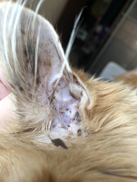 В ушах клещ. Сводите к вету. Вам и глазик и ушки покапать надо. Все успешно лечится.
