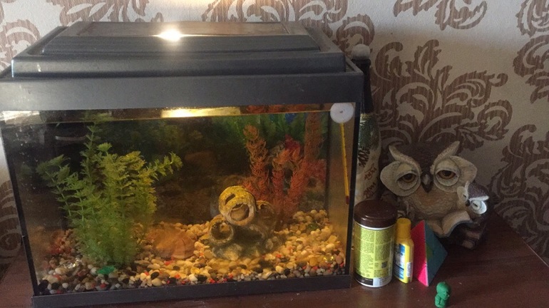 Пять лет назад нам подарили этот акварум, детям было интересно две недели, муж еще полгода возилмя. Остальное время он на мне- чистить, покупать новых рыбок, кормить старых.