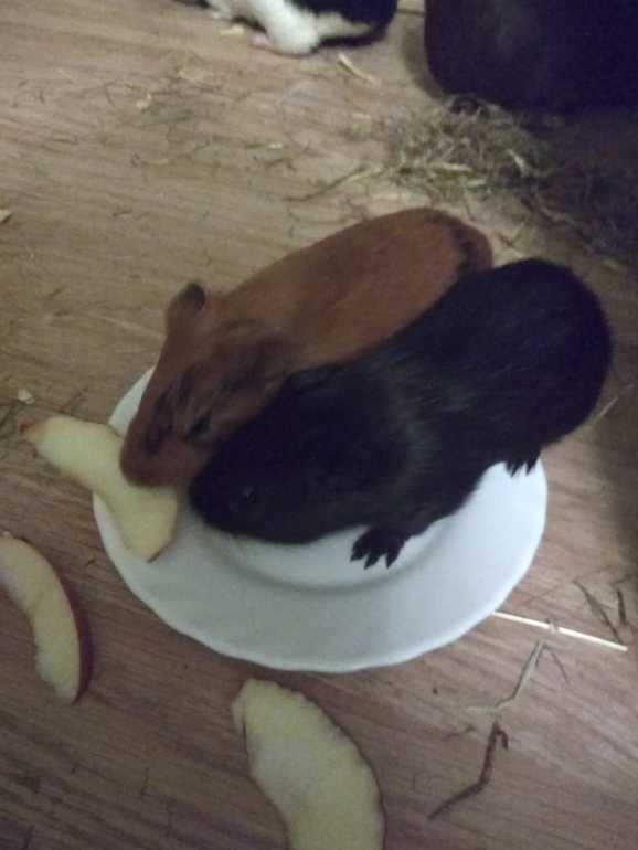 Новенькая Алиса заболела. Мы уже собирались снимать ее с карантина, как во вторник Вика увидела кровь у Алисы на опилках. Я думала, что это маточное кровотечение. Свинку в охапку, и на такси к дежурному ветеринару. Оказалось, кровь идет из кишечника. Что-то вроде язвенного поражения. Впервые в жизни я стала делать уколы живому существу. Байтрил в холку, но-шпа+супрастин и отдельно этамзилат внутримышечно в ногу. Ратолог дополнительно проверила на паразиты (ура! Их нет!) и прописала Ветом и Гамавит.