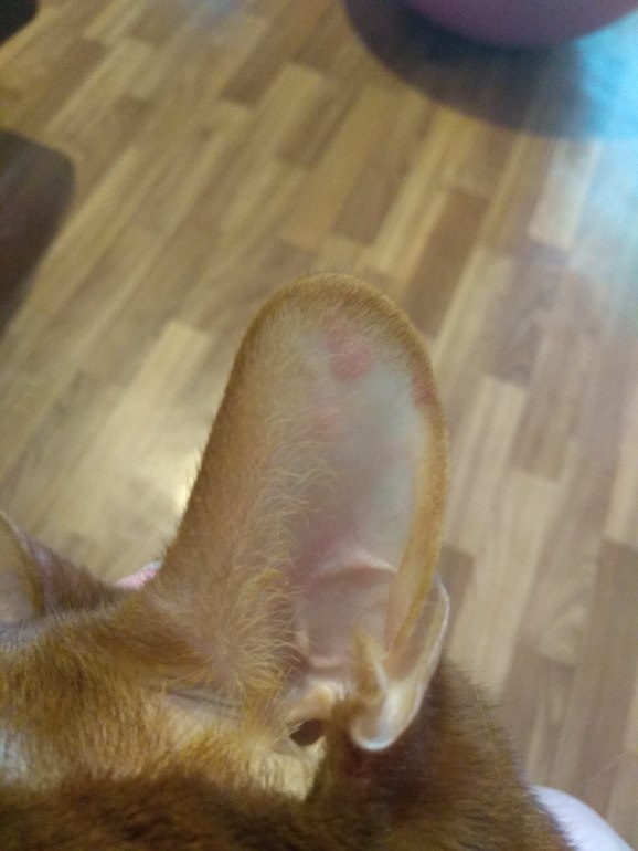 Новости сообществаСегодня увидела у кота пятнышко на ушке. Потрогала, немножко выпуклое оно. Что это может быть? Тишка чувствует себя хорошо, ушки не чешет. Все прививки у нас поставлены, корм не меняли. На улицу не ходим с ним.