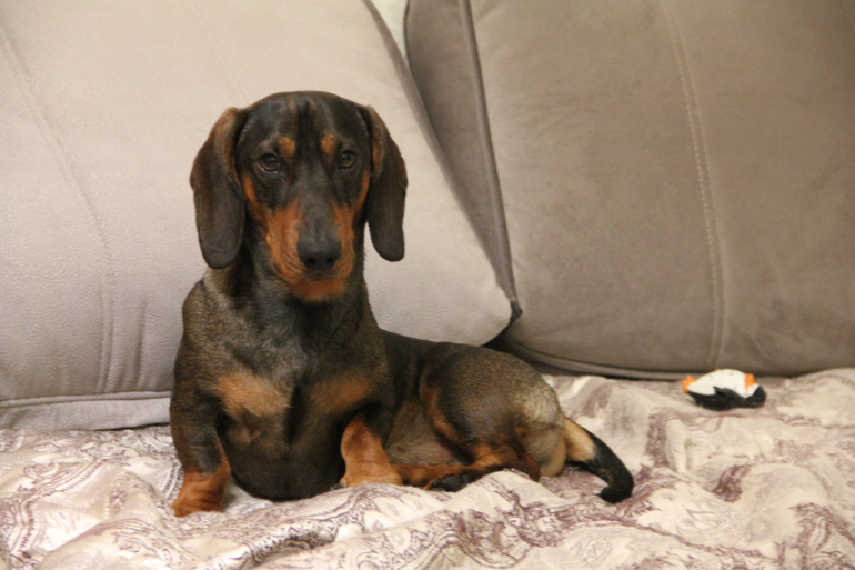 А еще такса наша оооочень любит тепло. Может всю ночь спать под одеялом ( и морду под одеялом). При этом очень желательно под моим одеялом вместе со мной.