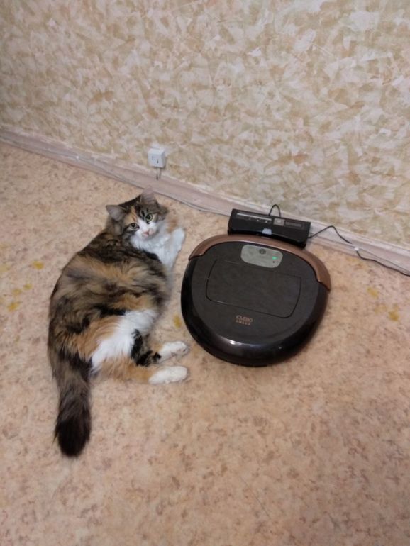 Подобранная летом Тесла окрепла, освоилась, по весу перегнала Доминику и пытается заводить дружбу с домочадцами. И если её симпатии к моему сыну я могла понять, то попытки подружиться с пылесосом меня удивляют :)