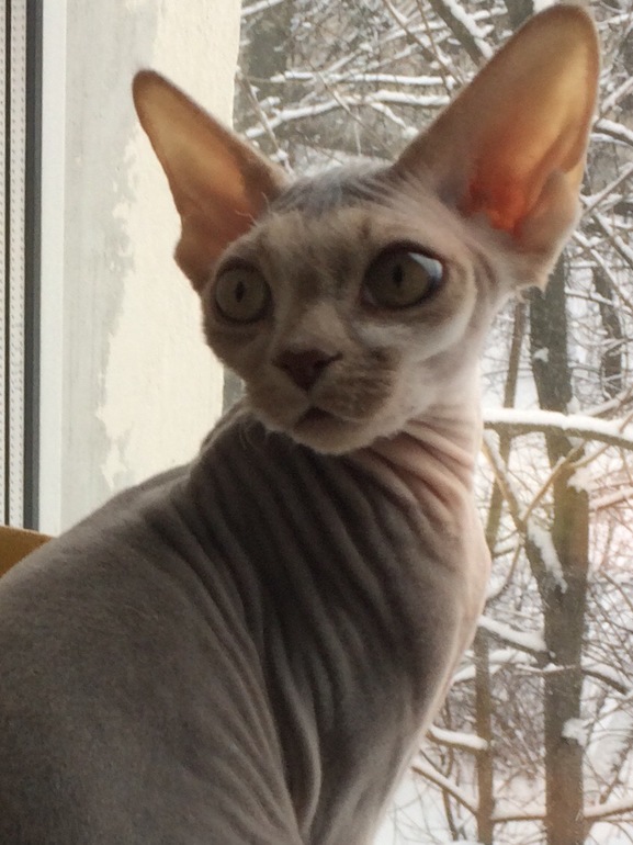 Наши любимцы!Вот почему-то захотелось мне написать нашу историю с моей маленькой кошечкой Камелькой. Начну с того, что я очень люблю абиссинских кошек, но так сложилось, что на эту породу у меня аллергия , а кошку все равно очень хотелось. Стала читать, искать, сидеть на кошачьих форумах, где мне и посоветовали познакомиться с породой девон-рекс. Нашла питомник, там как раз родились котята, поехали знакомиться. На тот момент малышам было два месяца. После ярких и с роскошной шубкой абиссинцев, голые и какие-то инопланетные девоны не вызвали у меня особого восторга)) Но близился день рождения дочери, которая очень ждала котёнка, у меня как ни странно, на девонов аллергия не проявилась, поэтому котёнка мы забронировали и стали ждать, когда можно нашу девочку забрать. Заводчица присылала видео и фото, дочка пищала от восторга, муж умилялся и улыбался, а вот у меня не екало, что вот она моя кошка! Наконец котёнку исполнилось 3,5 месяца и можно было забирать его домой. Разумеется, были куплены самые лучшие мисочки, кошачий комплекс из натурального дерева, когтеточка почти с меня ростом, но в голове все равно крутилась мысль-она не абиссинка, наверное я не смогу ее полюбить. Забрали мы малышку, привезли домой, освоилась она сразу, как будто всегда у нас и жила. Но! в первое утро (а это было воскресенье), Камелька разбудила меня своими прыжками в 6 утра! «Спасибо, что не в пять», мрачно подумала я, хватая кошку в охапку и идя с ней на кухню, пока она не разбудила мужа, дочку и собаку. Так мы и сидели с ней вдвоём, пока я варила себе кофе, а Камелька внимательно наблюдала за мной своими огромными глазами. Потом она деловито вскарабкалась ко мне на колени, вопросительно посмотрела на меня и лизнула руку)) И вот тут что-то екнуло у меня внутри! Я наклонилась к ней пониже, погладила щекой ее горячую замшевую шкурку, она замурчала, и так мне стало уютно и спокойно на душе! Я сразу перестала злится, что приходится рано утром сидеть на кухне босиком, и развлекать котёнка. Это был такой мощный кайф: чашка горячего кофе, абсолютная тишина и мурчащая кошка на коленях! И все-с этого момента лёд тронулся, Камелька теперь полноценный член семьи, которая заставляет хохотать над своими проделками в компании с собакой, которая всегда поднимет настроение своим мурчанием. Теперь она всегда со мной, это мой личный хвостик)) И хотя любовь к абиссинцам не стала меньше, но Девоны оказались не менее классными. Это маленькие обезьянки, которые заставят улыбаться любого. Пускайте кошек в свои сердца, даже если вы собачники ))