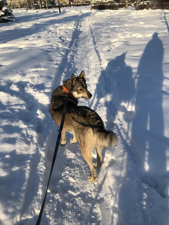 Отлично ходит на поводке, знает команды, знает лифт, отзывается на первый свист, везде с человеком рядом, ласковая, спокойна с котами, игривая, туалет только на улице.#вешняки#вао#перово#люберцы#новокосино#новогиреево#ЗСЛ#сибирскаялайка#лайка#охота#найденасобака#потеряшка#москва#собака