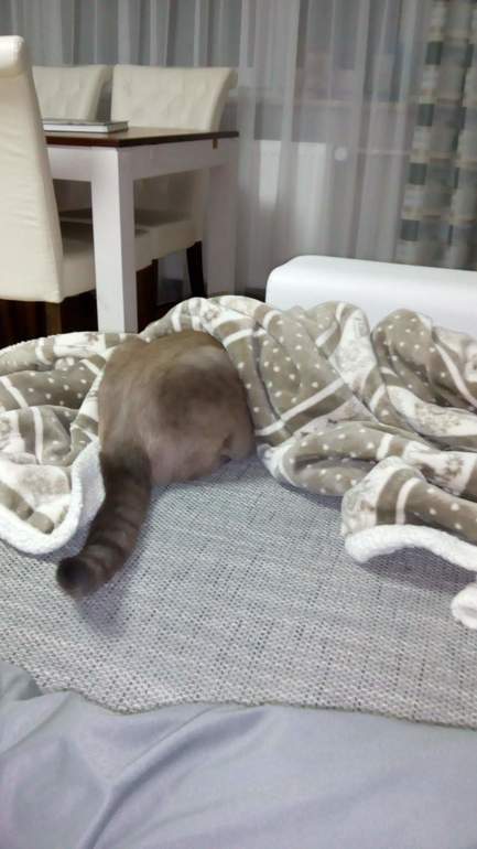 Красавчик...вот и все мои предыдущие коты спали так. А этот вечно под одеялом))