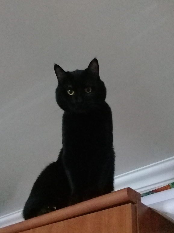 Наш другой кот черный с белой капелькой на груди, скоро 10 лет мальчику. Вот он от ветеринаров совсем тяжко отходит, он только клетку видит уже под кровать забивается, не витищишь никак..