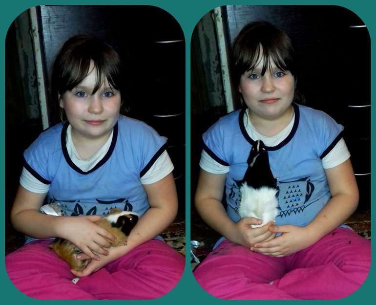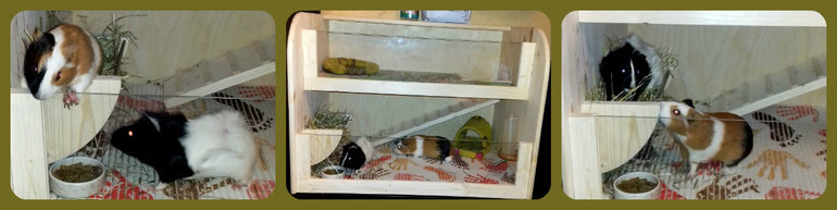 Поначалу они очень трусили, но потом освоились, правда, пока только по первому этажу. Впрочем, пока я делала коллаж из их фоток - Рози(это черненькая) умудрилась залезть на 2й этаж и отчаянно оттуда свистела, мол, на помощь! Но мы выдержали характер, так что находить оттуда выход ей пришлось самой. Но уже и второй раз там побывала))) А Симка пока трусит.