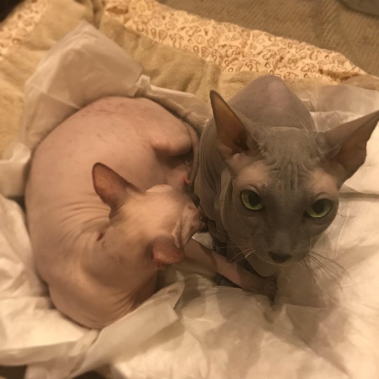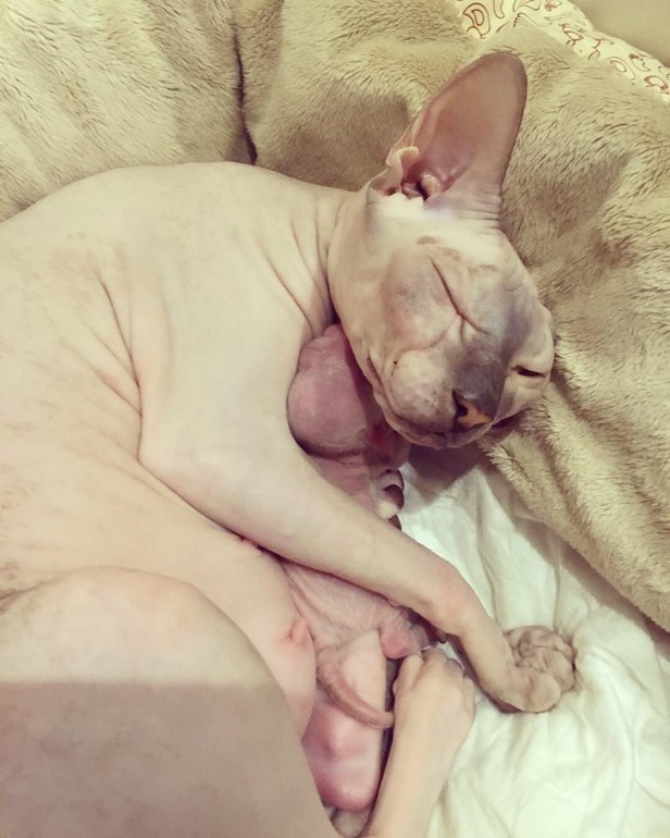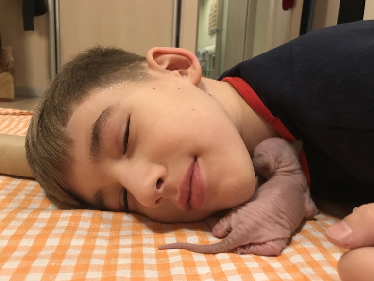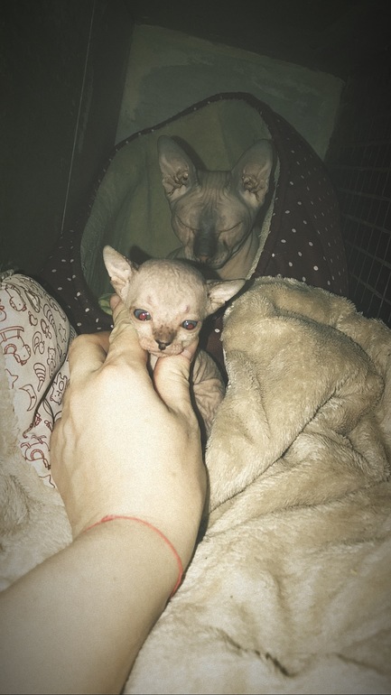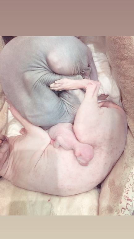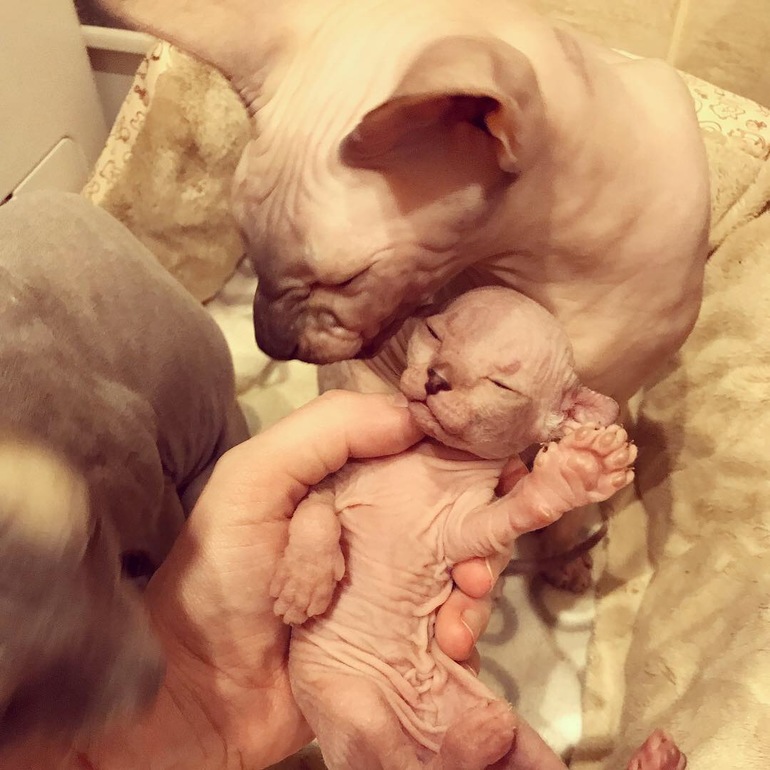 У нас тоже такие были, но сейчас нашей Еве уже 7 лет, стерилизовали, не хотим больше котят, они когда подрастают , проблем больше чем с детьми, а кошка у нас за своим потомство не смотрит, вернее именно, что просто смотрит😁сядет и смотрит на них, как они безобразничают, шторы дерут и гадят где попало🙄мне приходилось сидеть дома и приучать их. Обажаю сфинксов🙂