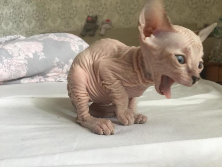 Очень нежная , игривая , может играть одна , если сравнивать с прошлыми котятами -тихая , я ее не замечаю и иногда забываю про неё 🤭☺️ Но если хочет есть -напоминает 😜 уже ест 2-3 р пюре мясные Агушу/Тему , сухой тоже ворует у мамки))