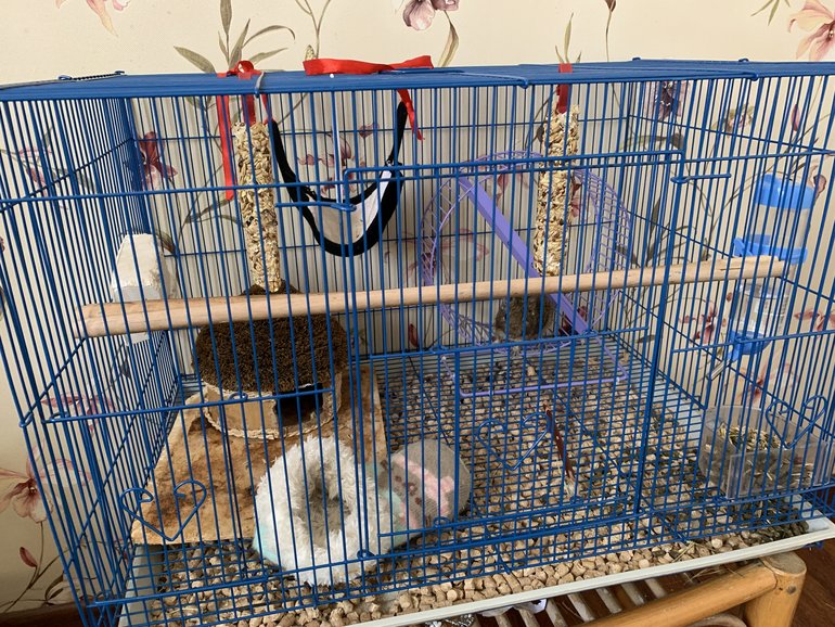 у нас кот есть, все в порядке. и клетка обычная, как раз сегодня колесо ему купили, носится по нему - всем счастье)).