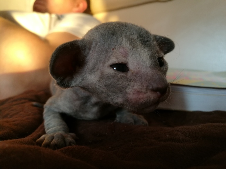Божечки, какая же милота! Вот как говорят - сейчас мимиметр треснет ) Нет, на мышонка не похожа совсем ) Для котенка, правда мне кажется необычной, но это из-за особенностей породы, у меня то кошка и котята все дворовые были ) Похожа на маленького прелестного инопланетного зверька )) Я дочке показываю ваших котят, тоже умиляется все-время, говорит "Нам бы такую лапушку!" ))