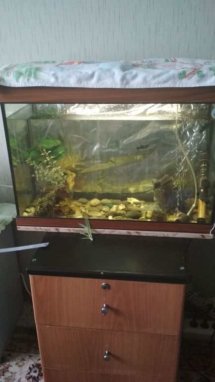 Рыбки, аквариумыЗнакомые уезжают. Отдали аквариум, тумбочку, корм, рыбок