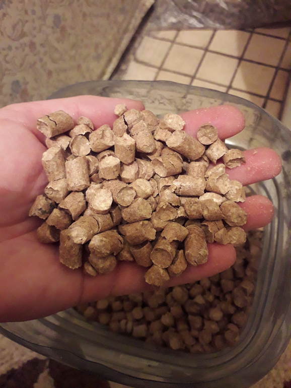 А сейчас нашла просто обалденную цену за 20кг. мешок - 170р. Там пеллеты не 6, а 8 мм в диаметре и короткие, бело-серого цвета. Рабочие качества такие-же - уже испытала на кошке и грызунах.