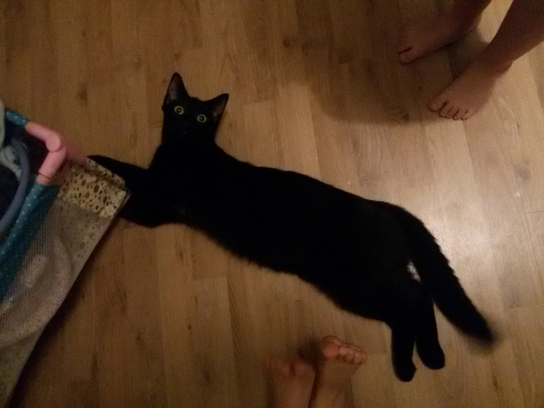 С хозяйкой его, Лизой, у него самые странные отношения. То ли он с ней играет как с младшей, то ли он ее, как эту самую младшую, травит: спрячется за угол и когда она пройдет, наскочит и вопьется в нее. Иногда даже следы остаются. Больше ни с кем он атк не делает. Может, это страстная любовь у него к ней, а может и (заслуженная) месть, так как Лизка иногда очень грубо с ним играет. Она его таскает как мешок, запихивает в коляски кукольные, водит на задних лапах, пока ей не влетит. На примере кота, я убедилась, что ей пока нельзя приобретать хрупких животных, пожалую, только упругий кот эти ее удушающие ласки выдержит)).