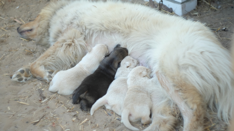 Я стала прикладывать малышей и сидеть вместе с собакой, чтобы она никуда не уходила от них. Ограничила ей пространство, чтобы она не могла спать далеко от малышей. На третий-четвертый день стало понятно, что молока очень мало, щенки как будто пустую грудь сосут . Пищат, так и хотелось их прям докормить. Но я понимала, какой это геморрой. В общем начали спасать ГВ собачье)) во-первых, увеличили порцию еды, во-вторых ей требовалось больше жидкости, но воду она пьет плохо. Я делала ей бульоны, разбавляла водой, она выпивала по целой миске. Так же делала с молоком. Разбавляла водой. И постоянно прикладывала щенков. Сама она их не кормит, а щенки доползти до мамы ещё не могли. Я садилась с собакой , прикладывала каждого щенка и ждала, пока они наедятся. Гладила ее, объясняла что малыши есть хотят) важно ещё: в задних молочных железах больше молока, чем в остальных. Если самого сильного и крупного щенка прикладывать к остальным железам, они быстрее тоже разработаются. В общем, на следующий же день молока стало больше, а щенки спокойнее. Через неделю наполнились и другие железы.