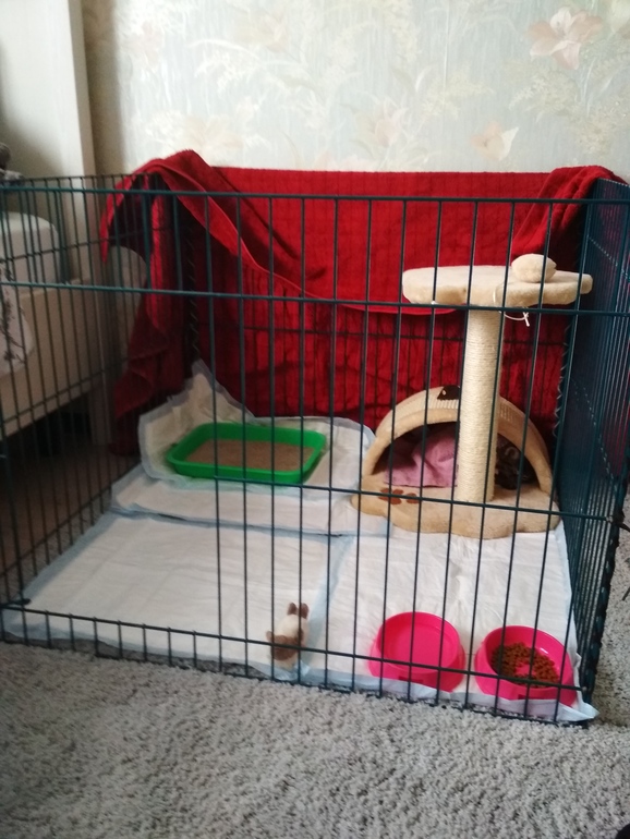 Тиша спит. Домик пришелся по душе. Я очень рада, что приобрела позиции, схожие с родным домом-домик, привычный корм, туалет